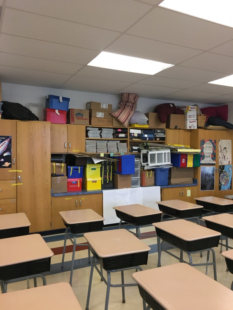 To the left, as I opened the door, were all of the boxes and storage bins, pillows and blankets, curriculum materials and units of study, crammed together and off the floor in June so that cleaning could happen while the teachers were gone.
